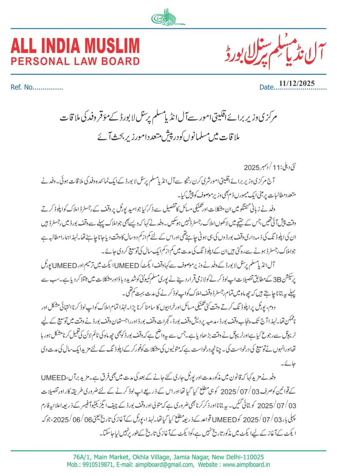ऑल इंडिया मुस्लिम पर्सनल लॉ बोर्ड का प्रतिनिधि मंडल जैसे ही अल्पसंख्यक कार्य मंत्री किरण रिजिजू से मिलने पहुँचा, मंत्रालय का माहौल अचानक ही बदल गया।