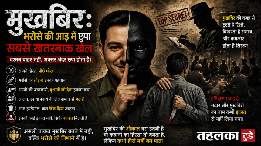 मुखबिर… यह सिर्फ एक शब्द नहीं, बल्कि ऐसा साया है जो समाज की सबसे मज़बूत दीवार—भरोसे—को भीतर से खोखला करता है। बाहर का दुश्मन दिख जाता है, उससे मुकाबला भी हो जाता है, लेकिन जो अंदर रहकर वार करे, उसकी पहचान करना ही सबसे बड़ी चुनौती बन जाता है।